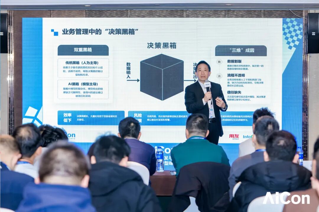 过去,传统BI、RPA等工具只能回答“发生了什么”,人是绝对决策主体;如今,Agentic AI、多智能体系统崛起,AI开始预测“将发生什么”、指导“应该怎么做”,在风险预警、自主交易等场景中主动参与决策。但这一转变中,“决策黑箱”成为最大阻碍:数据分散在异构系统,流程不透明,决策逻辑难以审计,导致效率低下、风险积聚,经验无法沉淀。解决之道是:让企业AI在数据层面进行全局视野进化。
