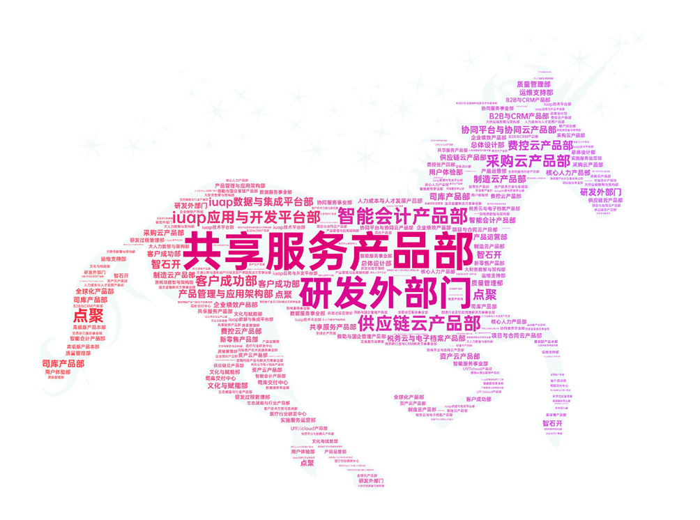 而使用次数位居前五位的组织是:共享服务产品部,研发外部门,智能会计产品部,供应链云产品部,iuap应用与开发平台部
