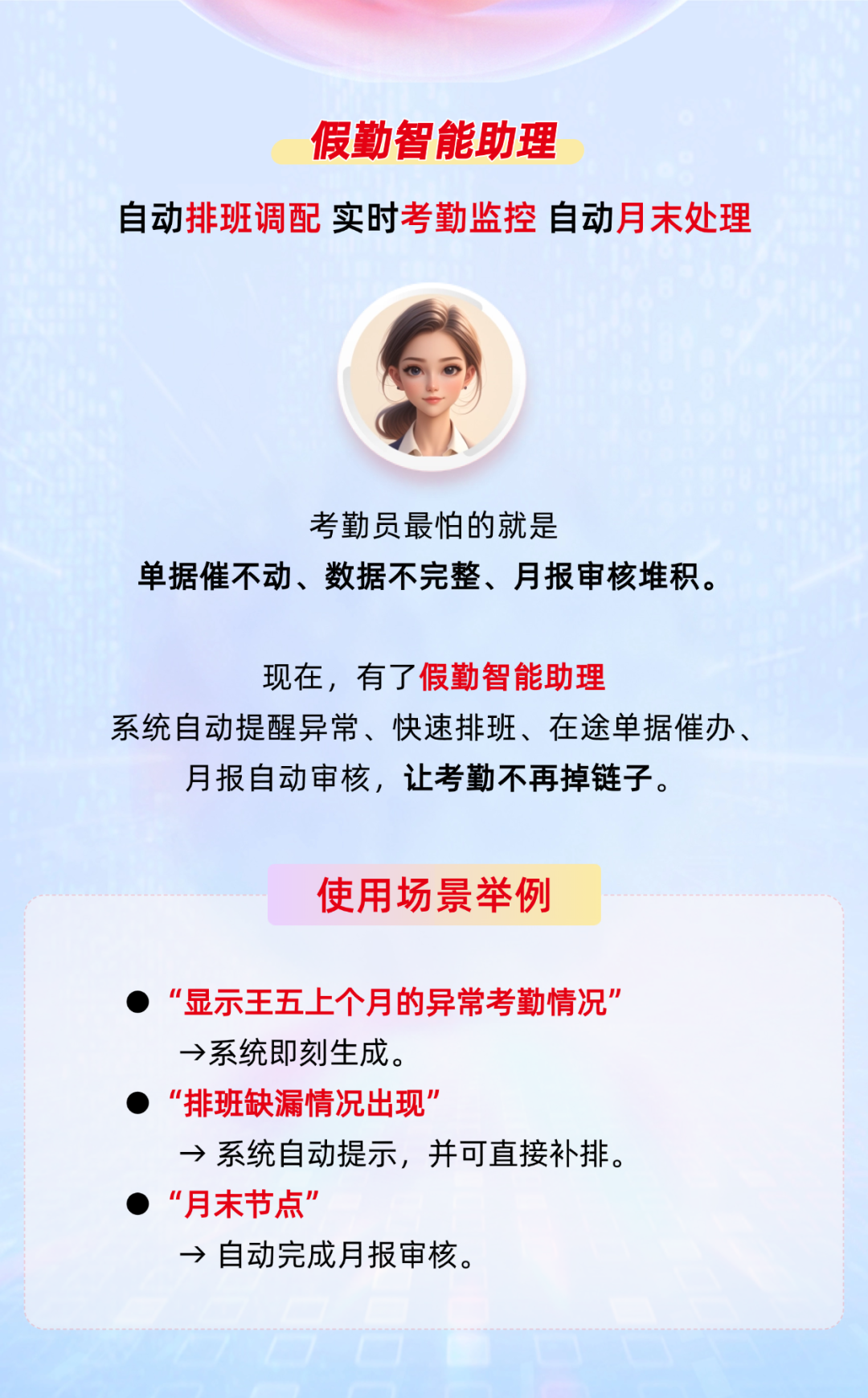 实时数据查询、智能信息稽核、业务自动处理,让入职、转正、合同续签、离职都能自动触发,真正解放 HR 双手。